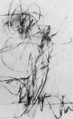 This subtractive approach is especially apparent in the dense thicket of dark and lifted charcoal lines that give Courante an intense, barely contained energy. You don't so much look at this piece as become submerged in its crosscurrents. In Trespass #1 and #2, Foosaner has taken cut swatches of Courante-like lines and erasures and pieced them together into a flat patchwork quilt placed on canvas. What was once a flow with its own logic becomes a herky-jerky pastiche of rhythms--kind of interesting but like mowing your prize flower bed to see how the petals fall.