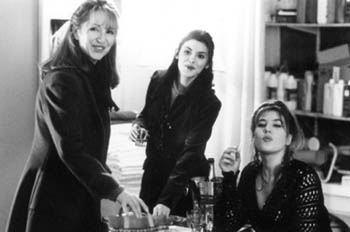 The diverting cast keeps the story from somberness. The customers in the salon include a nudist, Madame Buisse (Claire Nebout), and a creep who mistakes the Venus Beauty Institute for what might be termed an unethical massage parlor. (His voice full of significance, he asks if they give "California massages" with "the finishing touches.") Edith Scob, star of Eyes Without a Face--a movie Naomi Wolf could have sourced for her book The Beauty Myth--has a cameo as a woman lamenting the condition of her skin. Bulle Ogier, recently seen as the irritable, alcoholic little blonde in The Discreet Charm of the Bourgeoisie, is Madame Nadine, the proprietor. Baye gets fine support from her two fellow beauticians: the first, Samantha (Mathilde Seigner), is a big, clumping country girl as big as a Clydesdale; the second is Marie (Audrey Tautou), just as square as Samantha is easy. Marie is a maid who is being courted by an elder customer. He has a fantastic sob story: he was a pilot burned in an accident, and his wife sacrificed the skin of her bottom for grafts for his face, and now she's dead and he goes out and gets facials every week to preserve what's left of his late wife's ass.