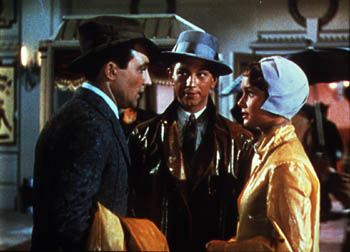 Singin' in the Rain has its cream-puff fantasy moments, such as the dream-sequence ballet near the end. Fifty feet of floating gauze are tossed about by the gusts of offscreen airplane motors, all for the purpose of unwrapping Cyd Charisse and her nine miles of legs.