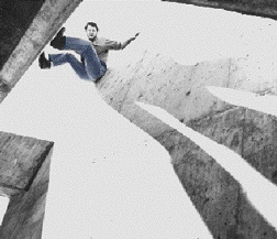 One evening we go downtown, bar-hopping, looking for mischief. On a dare, I chimney up two pillars of a bank building and onto the roof. I don't see the squad car. A voice booms over the PA: "Come down from the roof ... very slowly." I spend the next half hour sitting on the curb explaining to the officers that I wasn't trying to break into the bank.