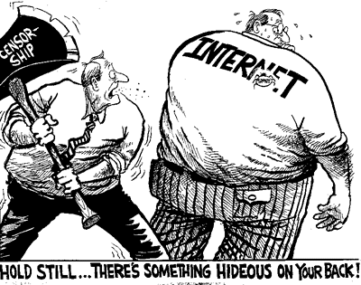 Congress took aim at the Internet in 1995 with a Senate amendment to the federal telecommunications bill that tries to censor "filthy," "lewd" or "indecent" materials on-line with two-year prison terms and $100,000 fines for offenders.