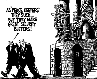 On May 26, Serbs took more than a dozen U.N. peacekeepers hostage and used them as human shields against NATO air raids. The White House also suffered a series of unrelated attacks during the year.