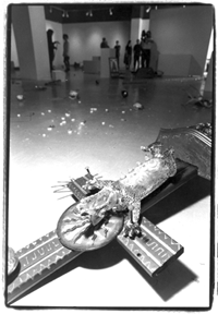 Arts and destroyed an exhibit of blown-glass and mixed-media sculpture in late