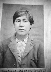 IF LEND AND CASTRO were 19 at the time of their arrest, that would have placed their births in 1865. Baptismal records at Mission Santa Cruz indicate a number of baptized "indios" that year. One, in particular, registers the baptism of a boy named José, born illegitimately ("natural") to a mother named María and a father named Jesús y María on June 18. That is likely Joe Lend. County records indicate that the two parents were later married.