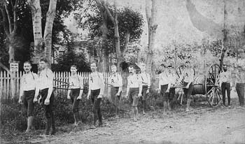 The Santa Cruz Alerts Fire-Hose Team: Samuel Cowell is the second firefighter from the left.