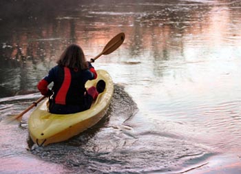 Canoes are fine, but tippy, and after years of piling kids in canoes, I longed to paddle on the river by myself. Finally, a little over a year ago, a friend and I bought several used kayaks. They're the sit-on, self-bailing, polyethylene type. With a lifejacket, paddle, wool socks, and polar fleece pants, for me venturing on the Russian River is practically a year-round sport.
