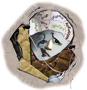 I'M EXPERIENCING schizophrenia for the first time. While spiders climb all over the room, the psychiatrist leans over his desk and shoves his face close to mine, his eyes squinty, red, and evil. He keeps asking me questions, but it's impossible to pay attention. The voices won't let me. "Loser, loser, loser," screams one. "You'll never make anything of yourself," says another. A third goads me to "run, run away."