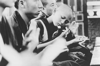 Unexplained as they are, these religious rites seem just as mysterious to new arrivals Palden and Nylma as they must to an audience largely unfamiliar with Tibetan Buddhism. We don't really get much of a sense of the boys adapting to their new lives, beyond their befriending some young monks obsessed with soccer, in particular Orgyen (Jamyang Lodro), who organizes secret trips to the village to watch the World Cup playoffs.