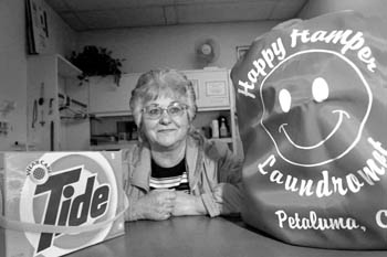 Each week for nine long years, we'd load our begrimed unmentionables into the back of the car and set off to launder them, grumbling about the efficacy of getting them even slightly clean in the filthy environs given to the public. And then one day a gleaming ray of light came into our lives. As we were struggling to get nine towels and one sock fitted into the trunk, our neighbors appeared like heroic angels of the Tide. "Taking those to the Happy Hamper?" they inquired. The happy what? we asked. Staffed by actual humans such as owner Starlett Bruner, the Happy Hamper puts the dignity back into public laundering with clean counters, floral displays, and fresh paint. "I want it to be a cheerful place," Bruner explains. For two glorious weeks we were happy with the Hamper, and it was good. We were almost disappointed when the children's grandparents took pity on us and bought us a washer and dryer set. Almost.