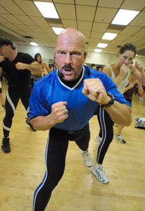 I had never dreamed that my first aerobics instructor would be a 200-pound, 6-foot-tall bodybuilder who'd been competing for years, and had been named Mr. Arizona. "I'm not into the bodybuilding aspect of fitness anymore," quips L.P., top trainer at Gold's Gym in Santa Rosa. "I'm really more interested in the health and nutrition aspect of it now." L.P. is, indeed, a paragon of health, and if anyone has the mental and physical strength to stick with his class, surprising results will be inevitable. The class, an hourlong session on Tuesday and Thursday, fills to maximum capacity fast, so be sure to get there early for a good step-spot. When one hears the word aerobics, the immediate picture that comes to mind is a Barbie doll in butt-floss jumping all over the floor. (Well, that's the immediate picture that comes to my mind.) L.P.'s class is nothing of the sort. He combines kickboxing, cross-training, weight lifting, and a little bit of dancing the twist in the high, high-impact aerobics class. "Chizzled" attendees are a hardcore group, and the class will make you sweat like nothing else (except maybe Bikram's Yoga!).