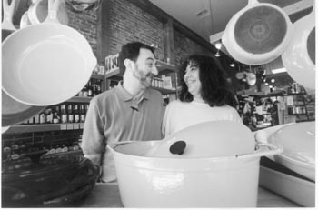 NOTHING IS MORE TELLING on a first dinner date at home than a brand-new pot on the stove. It conveys a sort of gourmet-geek eagerness, no matter how impressive that quadruple-ply, platinum-handled saucepan. And it certainly raises doubts as to one's qualifications as a cook: If it's that clean, how often do you actually cook? To forestall that line of thinking, stock the kitchen of your bachelor pad with used cookware from Pots and Pans. Owners Steve and Emily Bokor get great cookware from good chefs and pass it on at prices that aren't quite Goodwill, but are considerably lower than an equivalent batterie de cuisine at new, retail prices. For example, a good Calphalon 2 1/2-quart saucepan sells for $52 or less, compared to $85 new. Well-loved knives of excellent brands can be had from $10 to $75 (the latter, a Henckel's professional series 10-inch chef's knife, would cost close to $180 new). All-Clad doesn't often make it to the shelves because people don't like to give theirs up, says shop assistant Torch: "It's like finding the Holy Grail." But hey, desperate daters don't need the Holy Grail, they just want to look as if they've been around the butcher's block more than once. 107 Fourth St. (near Railroad Square), Santa Rosa. 566-7155.--M.W.