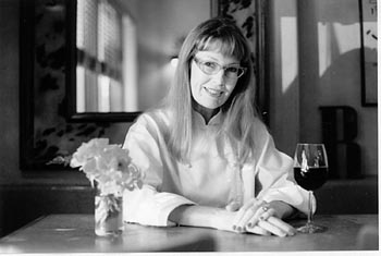 OK, TEENSY RAVENOUS CAFE in Healdsburg isn't actually a bedroom, but it sure feels like one. Dining in that intimate space (co-owned by Joyanne Pezzolo, above) feels as if you've ordered a very special room service at a fine Parisian hotel. At night, the restaurant, which has just eight tables, is transformed into a shadowy hideaway. Oversize tortoiseshell-framed mirrors, faux tiger-skin banquettes, deep ochre walls, topaz-hued beaded candleholders, and mellow music floating from the sound system complete the "chef's bedroom" illusion. Once ensconced in a cozy corner, you forget that the place is attached to the lobby of the venerable Raven Theater. But don't expect hot dogs and popcorn--smoked salmon and corn cakes with caviar and caperberries plus a glass of chilled sauvignon blanc will more likely be your fate. 117 North St., Healdsburg. 431-1770.--P.H.