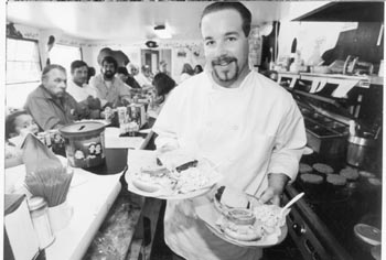 Sam's for Play Cafe is the anti-Denny's, a reminder of how much better a restaurant can be when it isn't homogenized and standardized to death. The eponymous owner has made the most of an unappealing location on the Sebastopol Road strip, advertising her diner in big blue can't-miss-it lettering that reads "for play." That's two words, not one, and it refers to the reason Sam went into business in the first place. The atmosphere is accordingly welcoming and unpretentious. License plates, old sheet music, witty placards, and other tchotchkes adorn the walls; one waitress wears a name tag that says "Oh Miss." You can buy a paper from the rack outside or rummage in the basket near the counter for a leftover sports section. And, oh yes, the food: the food is damn good. If you're celebrating something, you might break your fast with a Hangtown Fry (oysters, onions, and eggs) and a champagne mimosa. But if you're looking for a bargain, nothing beats the blue-plate special: a mess of potatoes, eggs, and chili for $2.95 on weekdays. 1024 Sebastopol Road, Santa Rosa. 528-0506.--Y.B.