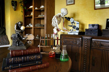 Step into Darwin's Workshop and you are stepping into the world of the 19th-century naturalist. The skeleton of a huge bird hangs from the ceiling. Skulls, chemistry equipment, microscopes, shells, seeds and a myriad of other objects to contemplate crowd the display cases and line the walls. It was in such an environment that Charles Darwin first organized his theory of evolution, and it is in this environment that Magi Discoe tutors students in science. After 15 years teaching biological and physical science at the high school honors course level (including three years as science department chair at Berkeley High), Discoe has chosen to leave the urban school environment, with its budget and curriculum constraints, to return to the one-on-one relationship with both students and nature available only to a rural naturalist. With her laboratory--like Darwin's--an integral part of her home, and with the natural world literally at her Green Valley front door, she can help individual students or small groups learn at their own pace in an entirely lab-based environment. "I've always considered myself a professional asker of questions," says Discoe. "Now I have the chance to help students learn in the most basic sense of the word--not just to memorize facts, but to develop the skills of analysis and critical thinking that will let them discover the concepts behind those facts." Darwin's Workshop offers science tutoring, workshops and enrichment programs for individuals and small groups, from middle school through junior college level. Contact Magi Discoe at 707.823.2758 or visit her website (currently under construction) at www.darwinsworkshop.com.--R.M.