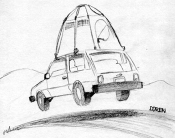 This is essentially a big collapsible plastic bottle that a camper fills with water and hangs from a tree in the sun each morning. It delivers a spray of surprisingly hot water each evening. The amazing part? It really works. Since there are so many remote campgrounds without showering facilities and even more that claim to have them, but really offer lukewarm, quarter-fed medieval torture devices, this is a solid concept for the devoted camper. (Unfortun-ately, it's also the closest many of us have ever come to using solar power.) Also great for washing dishes and taking sponge baths. It costs anywhere from $20 to $30. For the serious bather, there's the Sun Shower Enclosure, for an additional $27.95.