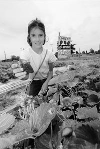 Simple pleasure: Bianca Westcott, 10, gathers strawberries at the U-pick patch on Highway 116 in Sebastopol.