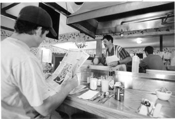For purists: plain puffy French toast ($3.95), dusted with powdered sugar and made with Texas toast--thick spongy slices of white bread perfect for sopping up the egg batter. Add pure maple syrup for 50 cents more. A very efficient young woman keeps the fresh coffee coming and thoughtfully covers your plates to keep the food warm.