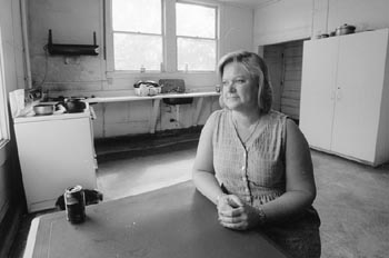 I am struck by how nonchalant or expressionless--I can't decide--this middle-aged man sitting across the table from me seems, tugging every now and then at his white straw cowboy hat, recalling a time not so long ago when he "had no place to wash my face, shower, change clothes, even use the bathroom."
