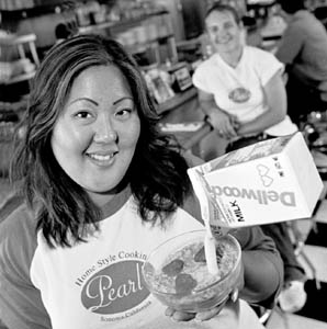 Look, No Hands: Pearl's owner, Sylvia Park, pours on the creamy goodness.
