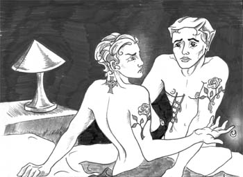 "You cheap liar, no needle ever touched you. You just wanted to get laid. Tomorrow it'll be a different set of fake piercings and phony tattoos. Get out."