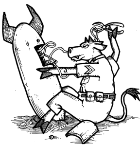 Instructions--the heart and soul of the Cheapass experience--are single sheets of nonglossy paper, with clear and simple text wrapped around some very R. Crumb-style illustrations. When the game involves playing cards, they always come bound with strips of paper cut from magazines and stuck together with scotch tape. These things aren't called Cheapass for nothing.